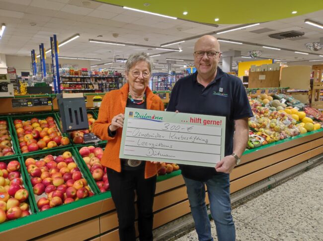 Osnabrück -Haste Dütmann unterstützt die Krebsberatungsstelle Osnabrück Mit großer Dankbarkeit überreichte Ralf Zumstrull, stellvertretend für Edeka-Duetmann Inhaber Guido Gartmann einen symbolischen Scheck über 300,– Euro an Frau Gabi Oevermann von der Krebsberatungsstelle Osnabrück. Diese Spende verdeutlicht die wertvolle Arbeit der Stiftung. Ein herzliches Dankeschön geht an unsere Kunden aus Haste,deren großzügige Spende von Pfandbons diese…