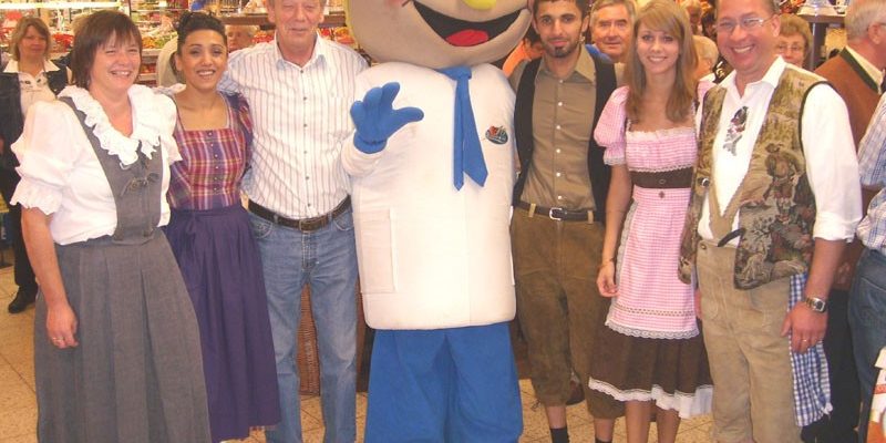 In blau-weißem Ambiente und in standesgemäßer Tracht hatte das Neukauf Dütmann-Team ein umfangreiches Büfett mit originalen, frischen Köstlichkeiten im Markt aufgebaut. Ab 10.00 Uhr begann das Schlemmerfrühstück zunächst mit Rühreiern und Nürnberger Würstchen, die den Gästen direkt aus der Pfanne serviert wurden. Darüber hinaus gab es diverse Leckereien, angefangen von frischem Mett, über bayerischen Käse bis zu würzigem Schinken.