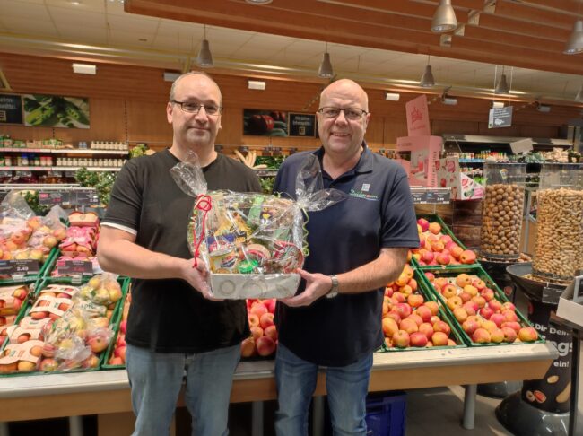 Hagen a.T.W. Guido Gartmann unterstützt die Ortsfeuerwehr Hagen a.T.W. Große Freude herrschte bei der Freiwilligen Ortsfeuerwehr Hagen a.T.W.. Ralf Zumstrull überreichte ,stellvertretend für Edeka-Duetmann Inhaber Guido Gartmann, mehrere Tombolapreise anlässlich des traditionellen Grünkohlessens der Ortswehr. Feuerwehrmitglied Markus Jostwerth bedankte sich im Namen aller Kameradinnen/Kameraden recht herzlich beim Spender.