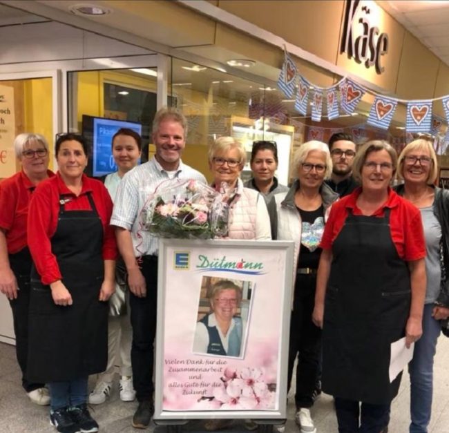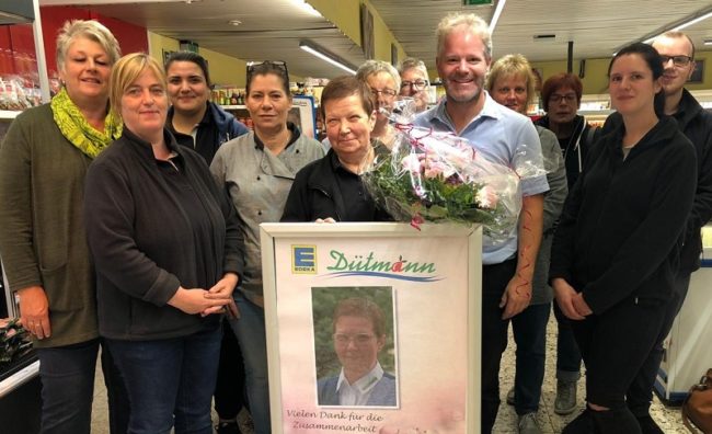 Erika Albers: Danke für 37 Jahre Zusammenarbeit Kloster Oesede. Sie gehörte und gehört zum Urgestein bei Dütmann: Erika Albers. Nach nunmehr 37 Jahren im Unternehmen verabschiedet sich die gelernte Verkäuferin schweren Herzens von der Arbeitswelt, um künftig ihren wohlverdienten Ruhestand zu genießen. Edeka Dütmann Inhaber Guido Gartmann und das gesamte Dütmann-Team bedankten sich bei einer offiziellen…