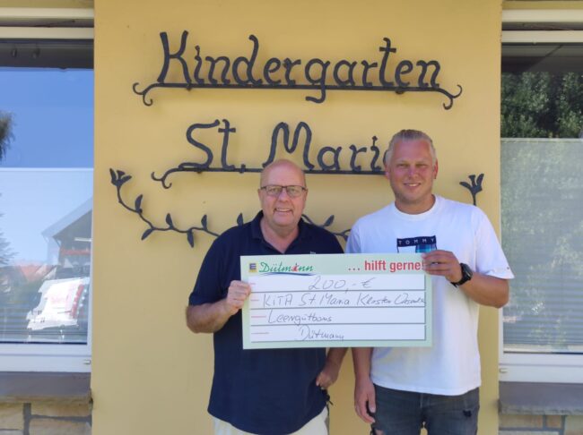 Kloster Oesede 200,– Euro für Spielgeräte in der neuen Turnhalle Mit einer Spende über 200,– Euro unterstützt Edeka-Duetmann den Kindergarten St. Maria in Kloster Oesede. Ralf Zumstrull überreichte einen symbolischen Scheck im Namen von Guido Gartmann an den Leiter der KITA Lars Zumstrull. Die Spende wurde durch Pfandbons unserer Kunden in Kloster Oesede ermöglicht. Von…