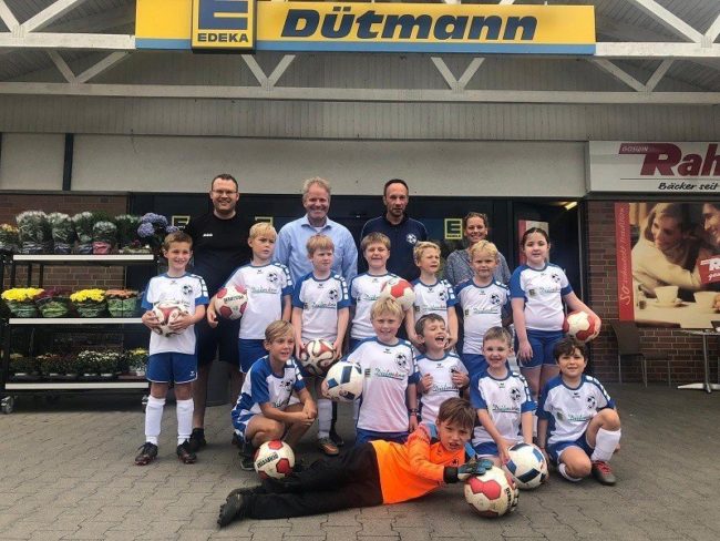 F1-Mannschaft der JSG Kloster Oesede / Harderberg freut sich über neue Trikots Kloster Oesede. Ende Oktober durften sich die jungen Nachwuchskicker der JSG Kloster Oesede über einen neuen Trikotsatz von Edeka Dütmann freuen. Künftig laufen die jungen Nachwuchskicker der F1-Mannschaft mit dem Logo des regionalen Frischespezialisten auf der Brust auf. Bei dem gemeinsamen Fototermin mit Edeka…