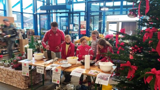 Frische Kekse bei Edeka Dütmann Oesede. Passend zur Weihnachtszeit gab es für die Kunden des Edeka Dütmann in Oesede etwas Süßes vom Förderverein der Regenbogenschule. Unter Anleitung des 1. Vorsitzenden Martin Schürmeyer, verteilten die kleinen Bäcker/innen Lea, Maya und Leo, fleißig die selbstgemachten Kekse. „Eine tolle Aktion, die super angenommen wurde“, meint auch Edeka Dütmann Inhaber…