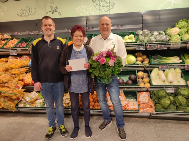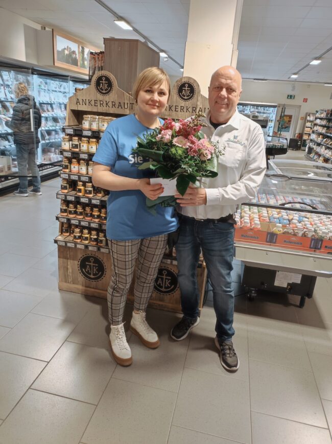 Holzhausen Brigitte Bischoff: 25 Jahre bei Dütmann Seit nunmehr 25 Jahren ist Frau Brigitte Bischoff eine zuverlässige Kraft im Dütmann- Team Holzhausen. Mit ihrem Fachwissen und ihrer Freundlichkeit ist sie tagtäglich für unsere Kundschaft präsent. In Anerkennung ihrer langjährigen Mitarbeit überreichte Ralf Zumstrull, stellvertretend für Edeka-Duetmann Inhaber Guido Gartmann,einen wunderschönen Blumenstrauß,sowie einen Warengutschein. Herzlichen Glückwunsch…
