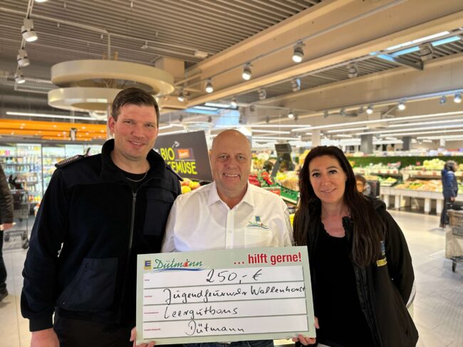Wallenhorst. Ganze 250 Euro wurden für die Jugendfeuerwehr Wallenhorst gesammelt! Ralf Zumstrull und Frau Sousa, Marktleiterin im E Center Wallenhorst, überreichten, stellvertretend für Dütmann-Inhaber Guido Gartmann, einen symbolischen Scheck an Jörn Brethold, stellvertretenden Zugführer der Freiwilligen Feuerwehr Wallenhorst. Diese Spende kommt der Jugendfeuerwehr zugute und soll in Brettspiele zum Thema Feuerwehr investiert werden, welche den…