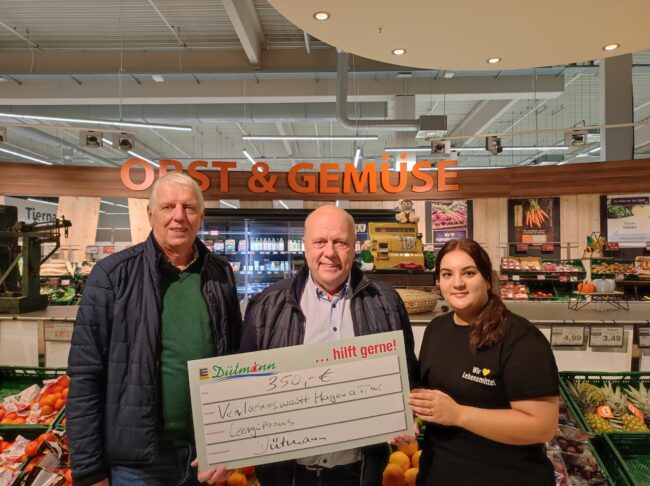 Hagen. Das Trainerteam Jörg Plogmann und Oliver Zander sowie alle Spieler des JSG Hagen/Niedermark bedanken sich Recht herzlich bei Dütmann-Inhaber Guido Gartmann für den neuen Satz Trikots. Ralf Zumstrull überreichte diese stellvertretend und ließ sich mit den stolzen Jungs und Mädchen zum Mannschaftsfoto ablichten. Das Team ist hochmotiviert und verspricht viele Tore und viele Siege.