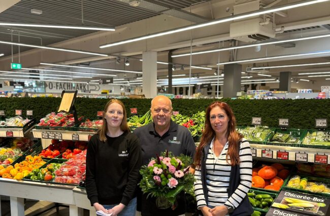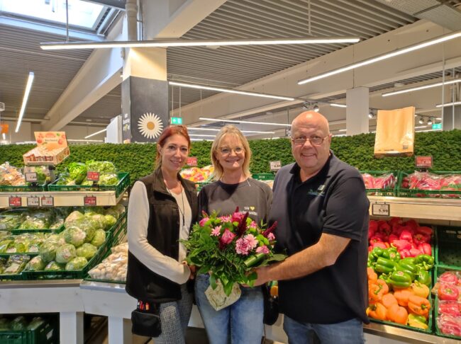 Wallenhorst Petra Lueske: 10 Jahre bei Dütmann Herzliche Glückwünsche zum 10 jährigen Jubiläum übermittelte Ralf Zumstrull und die stellvertretende Marktleiterin Ramona Sousa im Namen von Guido Gartmann, dem Inhaber von Edeka Dütmann an unsere Mitarbeiterin Petra Lueske. Zu diesem Anlass wurde ihr ein Blumenstrauß und ein Warengutschein überreicht. Ralf Zumstrull bedankte sich für ihr unermüdliches…