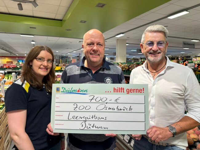 Osnabrück – Die F1-Jugend des SV Rasensport fühlt sich pudelwohl in ihren neuen Trikots, gesponsert von Dütmann. Ralf Zumstrull besuchte , stellvertretend für Dütmann Inhaber Guido Gartmann, das Team rund um die Trainer Tobias Heide (links) und Jasper Fehrlage (rechts) zum Training und ließ sich mit den glücklichen Nachwuchstalenten für die Übergabe der Trikots ablichten.…