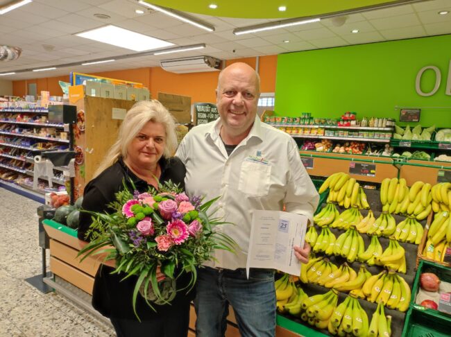 Osnabrück -Haste Ivona Kowal: 25 Jahre bei Dütmann Ein tolles 25 jähriges Jubiläum feiert Frau Ivona Kowal im Edeka Dütmann Markt Haste. Frau Kowal ist die gute Seele des Marktes und wird von Kunden und Kollegen gleichermaßen sehr geschätzt. Im Namen von Dütmann Inhaber Guido Gartmann überreichte Ralf Zumstrull einen prachtvollen Blumenstrauß und einen großzügigen…
