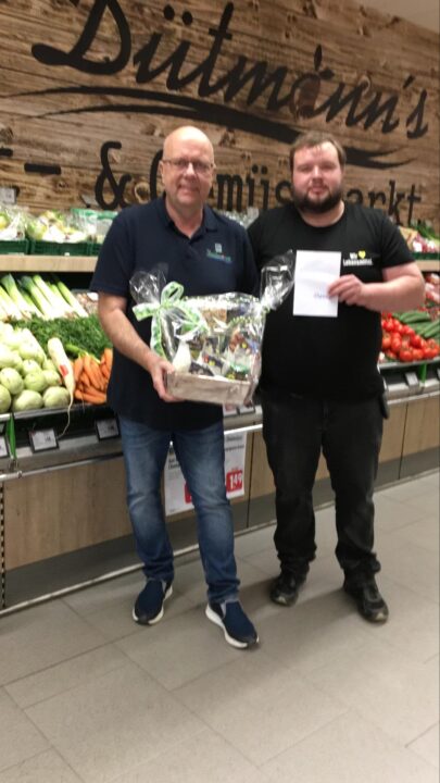 Seit nunmehr 10 Jahren ist Lars Kriege ein fleißiger und zuverlässiger Mitarbeiter im Dütmann Markt Lienen. In Anerkennung seiner langjährigen Tätigkeit überreichte Ralf Zumstrull, stellvertretend für Edeka-Duetmann Inhaber Guido Gartmann einen liebevoll zusammengestellten Präsentkorb und einen großzügigen Warengutschein. Wir freuen uns auf weitere Jahre und danken für seinen unermüdlichen Einsatz.
