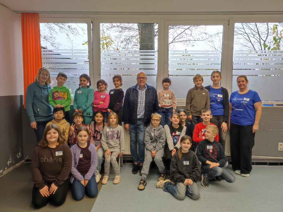 Edeka Dütmann, Inhaber Guido Gartmann, engagiert sich im Namen des Projekts „Mehr bewegen-besser essen“ für die Grundschüler innen/Grundschüler der Klasse 3a der Michaelisschule.