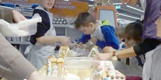 Aus den einfachen Zutaten, die Edeka Dütmann zur Verfügung stellte, ent-standen individuelle Häuschen. Keins glich dem anderen, jeder hatte seinem Werk eine eigene Note verliehen. Natürlich wurde zwischendurch das eigene Baumaterial auch mal einem geschmacklichen Qualitätstest unterzogen. Schließlich sollte nur wertvolles ‚Baumaterial‘ eingesetzt werden.