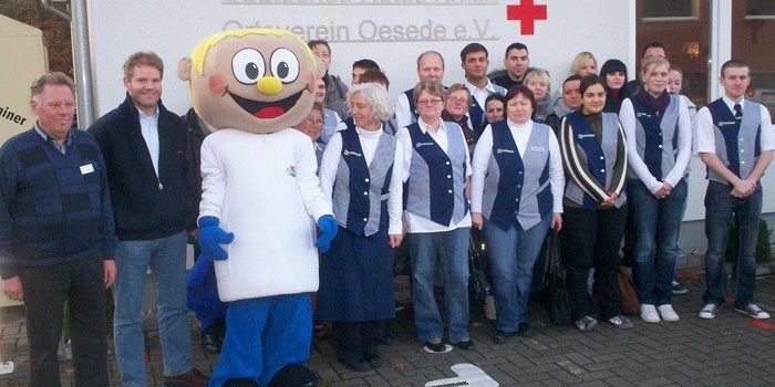 „Als bei uns die Blutspendeaktion angeregt wurde, haben sich spontan mehrere Mitarbeiter gemeldet“, freute sich Inhaber Guido Gartmann über die zahlreiche Beteiligung. Insgesamt 30 Dütmann-Mitarbeiter zeigten sich an diesem Tag von ihrer tapferen Seite. Den kleinen Piekser in den Arm überstanden alle nach eigener Aussage ohne Probleme. Selbst „Düti“, das Maskottchen von Neukauf Dütmann, war nach einiger Überredungskunst bereit Blut zu spenden. Zur Stärkung erhielten alle Blutspender anschließend noch eine kräftigende Mahlzeit, um den Kreislauf wieder in Schwung zu bringen.