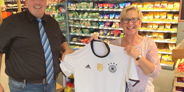 Verlosung der Trikots der deutschen Nationalmannschaft im Edeka Dütmann in Hollage